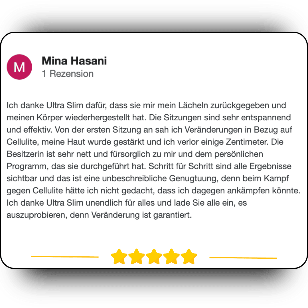 Bereits nach der ersten Behandlung verlierst du 2-5 cm deines Körperumfangs. Du glaubst uns nicht? Kein Problem! Sollte dieses Ergebnis nicht eintreffen, erhältst du dank der 100%-Geld-Zurück-Garantie den vollen Preis der Probebehandlung zurück erstattet. Somit besteht für dich absolut kein Risiko.